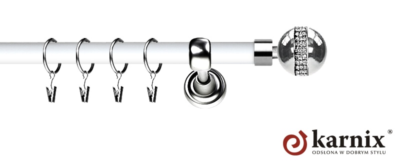 Karnisz Metalowy Prestige 25mm Globi Crystal INOX - biały