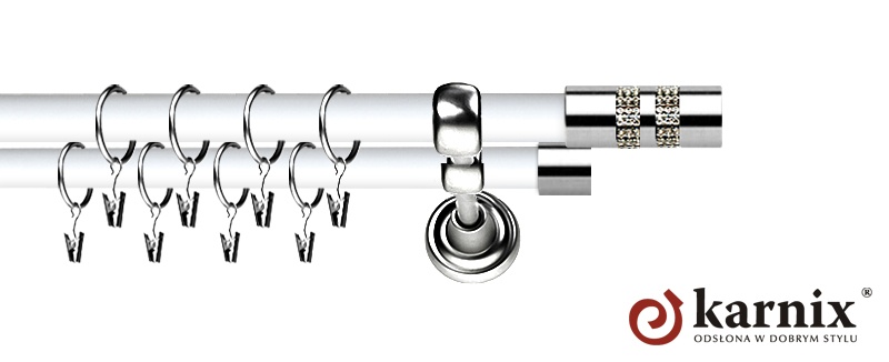 Karnisz Metalowy Prestige 25/19mm Lanso Crystal INOX - biały