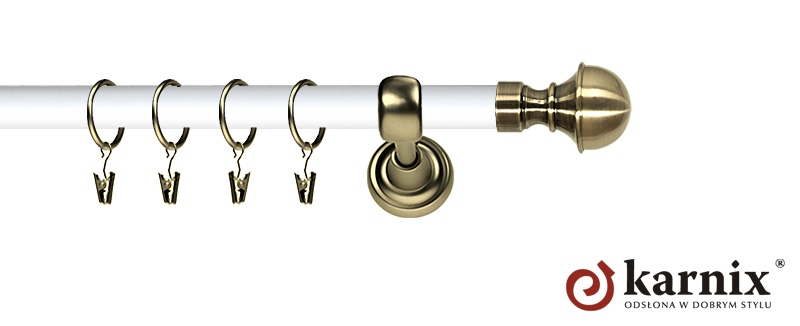 Karnisz Metalowy Prestige 25mm Bella Antyk mosiądz - biały