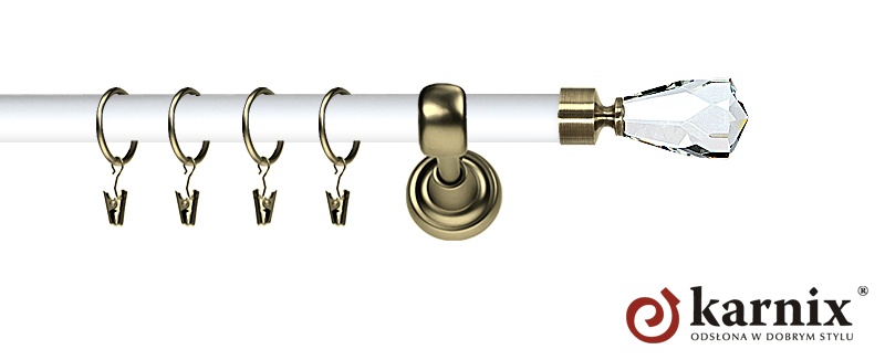 Karnisz Metalowy Prestige 25mm Travo Crystal Antyk mosiądz - biały
