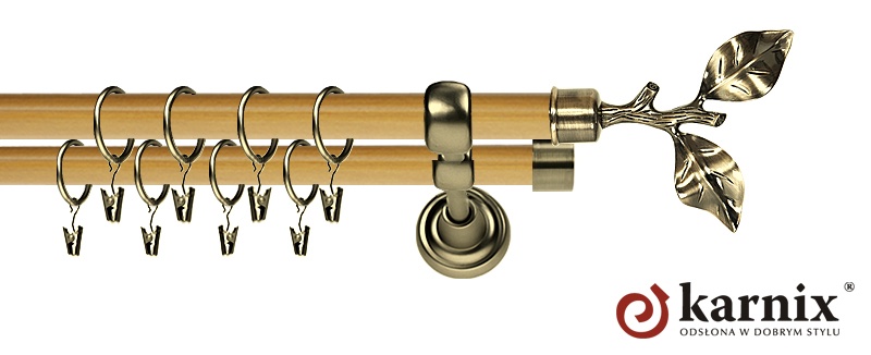 Karnisze Prestige z kolekcji firmy KARNIX to  propozycja dla wielbicieli tradycyjnego wzornictwa. Wprowadzając do sprzedaży tę linię karniszy, postanowiliśmy połączyć przeszłość z przyszłością, aby wykreować ponadczasową kolekcję. Uniwersalność i pomysłowość  to słowa klucze, które w skrócie charakteryzują kolekcję karniszy rzymskich. Elementy karniszy w całości wykonane są z metalu pokrytego powłoką galwaniczną oraz warstwą lakieru, która zwiększa odporność na ścieranie. Rury wykonane są z metalu pokrytego warstwą ochronną PVC TUBE THERMO SHRINK w naturalnych kolorach drewna.