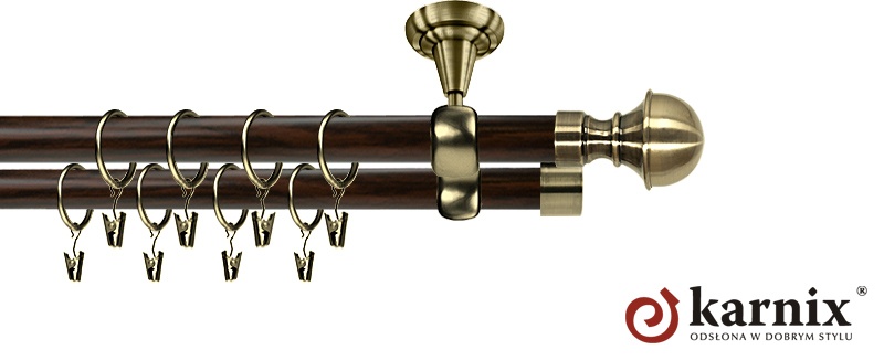 Karnisz Metalowy Prestige 25/19mm Bella Antyk mosiądz - wenge