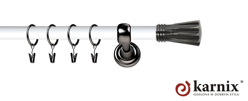 Obok popularnych barw takich jak antyk mosiądz oraz chrom mat, które są bardzo uniwersalnymi kolorami i potrafią wkomponować się niemal w każde wnętrze firma KARNIX wprowadziła do sprzedaży dwa dodatkowe nowoczesne kolory: antracyt oraz inox. Tworząc te dwie nowe linie kolorystyczne głęboko analizowaliśmy trendy panujące ostatnio w dziedzinie wystroju wnętrz. Uwaga! Inox oraz antracyt dostępne są przy średnicach 19 i 25mm.