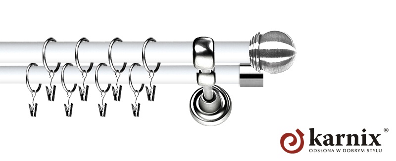 Karnisz Metalowy Prestige 19/19mm Gałka Max INOX - biały