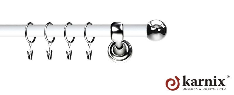 Karnisz Metalowy Prestige 19mm Kula INOX - biały