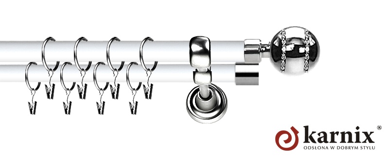 Karnisz Metalowy Prestige 19/19mm Pico Crystal INOX - biały