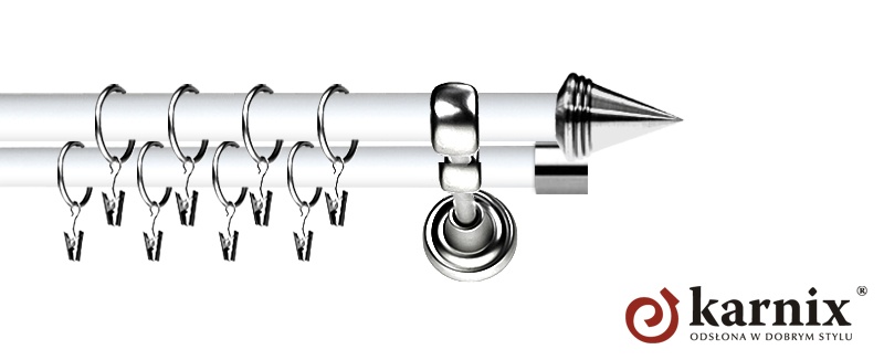 Karnisz Metalowy Prestige 19/19mm Stożek INOX - biały