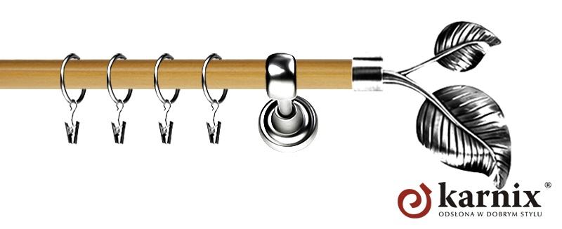 Karnisze Prestige z kolekcji firmy KARNIX to  propozycja dla wielbicieli tradycyjnego wzornictwa. Wprowadzając do sprzedaży tę linię karniszy, postanowiliśmy połączyć przeszłość z przyszłością, aby wykreować ponadczasową kolekcję. Uniwersalność i pomysłowość  to słowa klucze, które w skrócie charakteryzują kolekcję karniszy rzymskich. Elementy karniszy w całości wykonane są z metalu pokrytego powłoką galwaniczną oraz warstwą lakieru, która zwiększa odporność na ścieranie. Rury wykonane są z metalu pokrytego warstwą ochronną PVC TUBE THERMO SHRINK w naturalnych kolorach drewna.