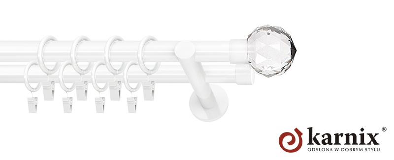 Nowoczesne karnisze NEO Beluna Crystal, utrzymane w kolorze białym, to modele niezwykle eleganckie i wpisujące się w aktualnie obowiązujące trendy. Wyróżnia je przede wszystkim uniwersalna kolorystyka, dzięki której sprawdzą się w zestawieniu z zasłonami czy firankami o różnych barwach i zdobieniach. W szczególności warto wziąć je pod uwagę, urządzając wnętrze w stylu skandynawskim, ale znakomicie będą prezentować się również w pomieszczeniach o wystroju marynarskim. W tym modelu uwagę zwracają przede wszystkim końcówki Belona Crystal. To geometryczne zakończenie przypominające starannie oszlifowane diamenty, jest w stanie diametralnie zmienić wygląd okna i charakter całego pomieszczenia. Nowoczesne karnisze NEO Beluna Crystal są nie tylko niezwykle stylowe, ale przede wszystkim komfortowe w użyciu. Dzięki pokryciu metalu powłoką galwaniczną i lakierem zawieszone na nim żabki będzie można bez problemu przesuwać. Pokrycie materiału doskonale zabezpieczającą powłoką sprawia też, że przesuwanie żabek nie spowoduje na karniszu żadnych uszkodzeń, a produkt przez długi czas będzie wyglądał jak nowy. Serdecznie zapraszamy do zapoznania się z całą ofertą i życzymy udanych zakupów.