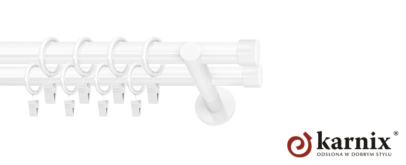 Nowoczesne karnisze NEO Luna zostały zaprojektowane z wykorzystaniem aktualnych trendów w stylizacji wnętrz. Ich biały kolor doskonale pasuje do pomieszczeń umeblowanych w stylu skandynawskim, angielskim i minimalistycznym. Eleganckie i klasyczne zakończenia Luna przedłużają całość łącznie o 2 centymetry. Karnisz NEO Luna jest pozycją obowiązkową dla osób lubiących przytulne wnętrza i ceniących sobie prywatność. Całość wykonana jest z metalu, który pokryto powłoką galwaniczną i dodatkowo zabezpieczono lakierem, by ograniczyć ścieranie. Kółka z żabkami mogą być wyposażone w teflonową warstwę, która poprawia ślizg i umożliwia bezgłośne przesuwanie dekoracji okiennych. Wkręty i kołki montażowe pozwalają na szybki i samodzielny montaż. Wszystkie elementy są wykonane w jednolitej, białej kolorystyce.