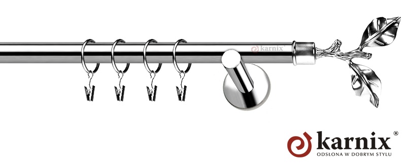 Karnisze Nowoczesne NEO z nowej kolekcji firmy KARNIX to  propozycja skierowana do wielbicieli nowoczesnego wzornictwa. Wprowadzając do sprzedaży tę nową, designerską linię nowoczesnych karniszy, postanowiliśmy połączyć przeszłość z przyszłością, aby wykreować ponadczasową kolekcję. Jakość, pomysłowość i nowoczesność  to słowa klucze, które w skrócie charakteryzują kolekcję karniszy nowoczesnych NEO. Elementy karniszy nowoczesnych NEO w całości wykonane są z metalu pokrytego powłoką galwaniczną oraz warstwą lakieru, która zwiększa odporność na ścieranie.