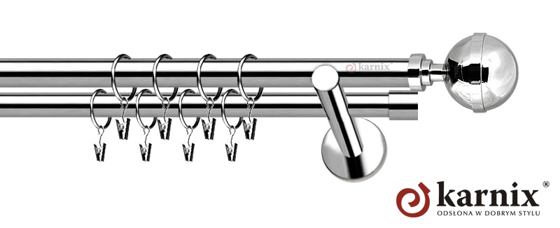 Karnisze Nowoczesne NEO z nowej kolekcji firmy KARNIX to propozycja skierowana do wielbicieli nowoczesnego wzornictwa. Wprowadzając do sprzedaży tę nową, designerską linię nowoczesnych karniszy, postanowiliśmy połączyć przeszłość z przyszłością, aby wykreować ponadczasową kolekcję. Jakość, pomysłowość i nowoczesność to słowa klucze, które w skrócie charakteryzują kolekcję karniszy nowoczesnych NEO. Elementy karniszy nowoczesnych NEO w całości wykonane są z metalu pokrytego powłoką galwaniczną oraz warstwą lakieru, która zwiększa odporność na ścieranie.