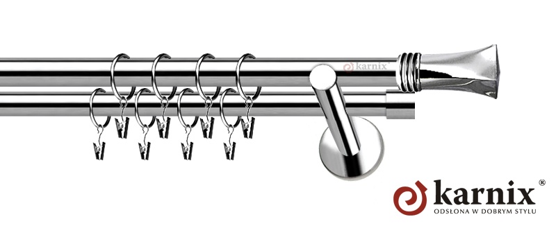 Karnisze Nowoczesne NEO z nowej kolekcji firmy KARNIX to  propozycja skierowana do wielbicieli nowoczesnego wzornictwa. Wprowadzając do sprzedaży tę nową, designerską linię nowoczesnych karniszy, postanowiliśmy połączyć przeszłość z przyszłością, aby wykreować ponadczasową kolekcję. Jakość, pomysłowość i nowoczesność  to słowa klucze, które w skrócie charakteryzują kolekcję karniszy nowoczesnych NEO. Elementy karniszy nowoczesnych NEO w całości wykonane są z metalu pokrytego powłoką galwaniczną oraz warstwą lakieru, która zwiększa odporność na ścieranie.