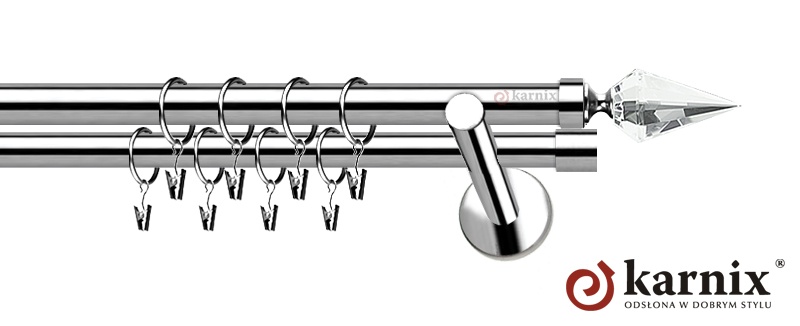 Karnisze Nowoczesne NEO z nowej kolekcji firmy KARNIX to  propozycja skierowana do wielbicieli nowoczesnego wzornictwa. Wprowadzając do sprzedaży tę nową, designerską linię nowoczesnych karniszy, postanowiliśmy połączyć przeszłość z przyszłością, aby wykreować ponadczasową kolekcję. Jakość, pomysłowość i nowoczesność  to słowa klucze, które w skrócie charakteryzują kolekcję karniszy nowoczesnych NEO. Elementy karniszy nowoczesnych NEO w całości wykonane są z metalu pokrytego powłoką galwaniczną oraz warstwą lakieru, która zwiększa odporność na ścieranie.