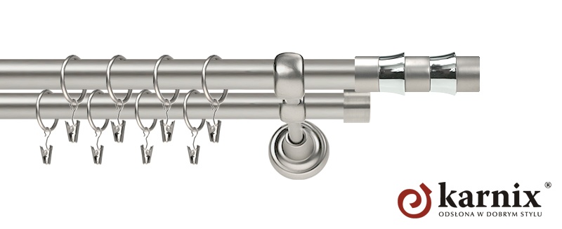 Karnisze Metalowe Rzymskie z kolekcji firmy KARNIX to  propozycja dla wielbicieli tradycyjnego wzornictwa. Wprowadzając do sprzedaży tę linię karniszy metalowych, postanowiliśmy połączyć przeszłość z przyszłością, aby wykreować ponadczasową kolekcję. Uniwersalność i pomysłowość  to słowa klucze, które w skrócie charakteryzują kolekcję karniszy metalowych rzymskich. Elementy karniszy w całości wykonane są z metalu pokrytego powłoką galwaniczną oraz warstwą lakieru, która zwiększa odporność na ścieranie. Uwaga. Inox oraz antracyt dostępne są przy średnicach 19 i 25mm.