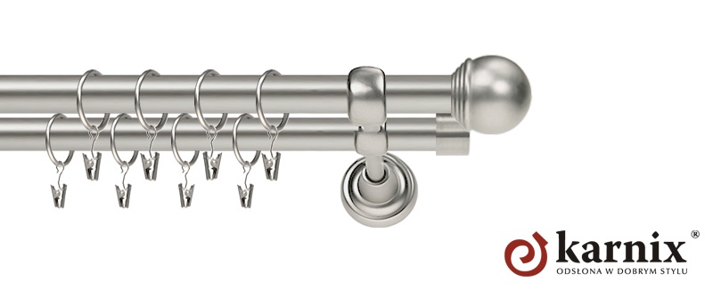Karnisze Metalowe Rzymskie z kolekcji firmy KARNIX to  propozycja dla wielbicieli tradycyjnego wzornictwa. Wprowadzając do sprzedaży tę linię karniszy metalowych, postanowiliśmy połączyć przeszłość z przyszłością, aby wykreować ponadczasową kolekcję. Uniwersalność i pomysłowość  to słowa klucze, które w skrócie charakteryzują kolekcję karniszy metalowych rzymskich. Elementy karniszy w całości wykonane są z metalu pokrytego powłoką galwaniczną oraz warstwą lakieru, która zwiększa odporność na ścieranie. Uwaga. Inox oraz antracyt dostępne są przy średnicach 19 i 25mm.