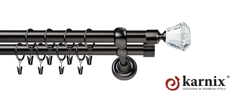 Obok popularnych barw takich jak antyk mosiądz oraz chrom mat, które są bardzo uniwersalnymi kolorami i potrafią wkomponować się niemal w każde wnętrze firma KARNIX wprowadziła do sprzedaży dwa dodatkowe nowoczesne kolory: antracyt oraz inox. Tworząc te dwie nowe linie kolorystyczne karniszy metalowych głęboko analizowaliśmy trendy panujące ostatnio w dziedzinie wystroju wnętrz. Uwaga! Inox oraz antracyt dostępne są przy średnicach 19 i 25mm.