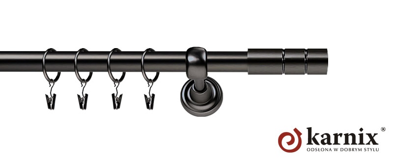 Karnisze Metalowe Rzymskie z kolekcji firmy KARNIX to  propozycja dla wielbicieli tradycyjnego wzornictwa. Wprowadzając do sprzedaży tę linię karniszy metalowych, postanowiliśmy połączyć przeszłość z przyszłością, aby wykreować ponadczasową kolekcję. Uniwersalność i pomysłowość  to słowa klucze, które w skrócie charakteryzują kolekcję karniszy metalowych rzymskich. Elementy karniszy w całości wykonane są z metalu pokrytego powłoką galwaniczną oraz warstwą lakieru, która zwiększa odporność na ścieranie. Uwaga. Inox oraz antracyt dostępne są przy średnicach 19 i 25mm.