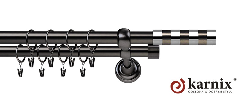 Karnisze Metalowe Rzymskie z kolekcji firmy KARNIX to  propozycja dla wielbicieli tradycyjnego wzornictwa. Wprowadzając do sprzedaży tę linię karniszy metalowych, postanowiliśmy połączyć przeszłość z przyszłością, aby wykreować ponadczasową kolekcję. Uniwersalność i pomysłowość  to słowa klucze, które w skrócie charakteryzują kolekcję karniszy metalowych rzymskich. Elementy karniszy w całości wykonane są z metalu pokrytego powłoką galwaniczną oraz warstwą lakieru, która zwiększa odporność na ścieranie. Uwaga. Inox oraz antracyt dostępne są przy średnicach 19 i 25mm.