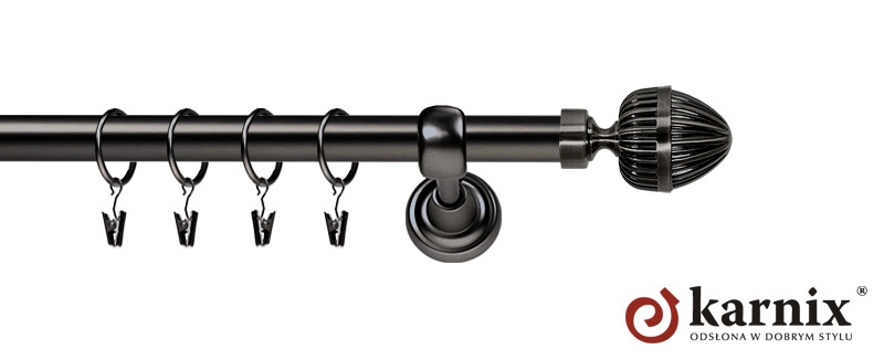 Karnisze Metalowe Rzymskie z kolekcji firmy KARNIX to  propozycja dla wielbicieli tradycyjnego wzornictwa. Wprowadzając do sprzedaży tę linię karniszy metalowych, postanowiliśmy połączyć przeszłość z przyszłością, aby wykreować ponadczasową kolekcję. Uniwersalność i pomysłowość  to słowa klucze, które w skrócie charakteryzują kolekcję karniszy metalowych rzymskich. Elementy karniszy w całości wykonane są z metalu pokrytego powłoką galwaniczną oraz warstwą lakieru, która zwiększa odporność na ścieranie. Uwaga. Inox oraz antracyt dostępne są przy średnicach 19 i 25mm.