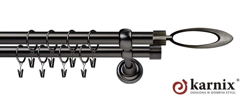 Obok popularnych barw takich jak antyk mosiądz oraz chrom mat, które są bardzo uniwersalnymi kolorami i potrafią wkomponować się niemal w każde wnętrze firma KARNIX wprowadziła do sprzedaży dwa dodatkowe nowoczesne kolory: antracyt oraz inox. Tworząc te dwie nowe linie kolorystyczne karniszy metalowych głęboko analizowaliśmy trendy panujące ostatnio w dziedzinie wystroju wnętrz. Uwaga! Inox oraz antracyt dostępne są przy średnicach 19 i 25mm.