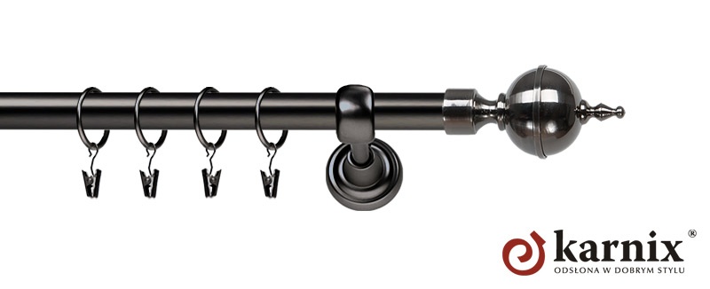 Karnisze Metalowe Rzymskie z kolekcji firmy KARNIX to  propozycja dla wielbicieli tradycyjnego wzornictwa. Wprowadzając do sprzedaży tę linię karniszy metalowych, postanowiliśmy połączyć przeszłość z przyszłością, aby wykreować ponadczasową kolekcję. Uniwersalność i pomysłowość  to słowa klucze, które w skrócie charakteryzują kolekcję karniszy metalowych rzymskich. Elementy karniszy w całości wykonane są z metalu pokrytego powłoką galwaniczną oraz warstwą lakieru, która zwiększa odporność na ścieranie. Uwaga. Inox oraz antracyt dostępne są przy średnicach 19 i 25mm.