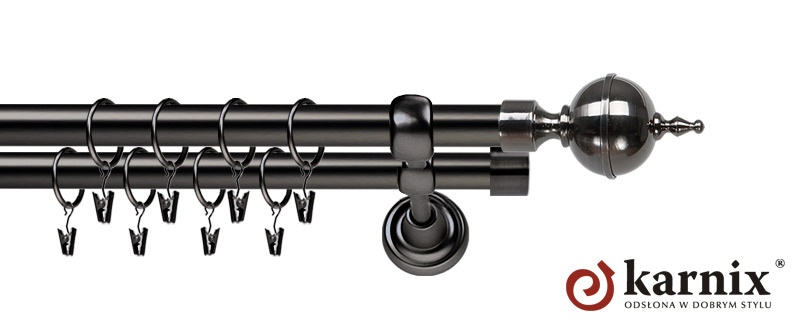 Karnisze Metalowe Rzymskie z kolekcji firmy KARNIX to  propozycja dla wielbicieli tradycyjnego wzornictwa. Wprowadzając do sprzedaży tę linię karniszy metalowych, postanowiliśmy połączyć przeszłość z przyszłością, aby wykreować ponadczasową kolekcję. Uniwersalność i pomysłowość  to słowa klucze, które w skrócie charakteryzują kolekcję karniszy metalowych rzymskich. Elementy karniszy w całości wykonane są z metalu pokrytego powłoką galwaniczną oraz warstwą lakieru, która zwiększa odporność na ścieranie. Uwaga. Inox oraz antracyt dostępne są przy średnicach 19 i 25mm.