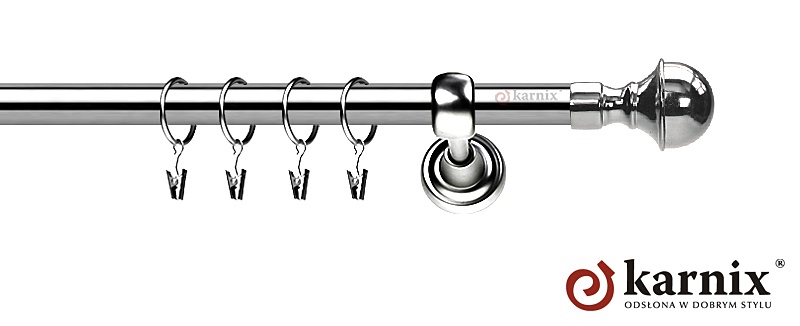 Karnisze Metalowe Rzymskie z kolekcji firmy KARNIX to  propozycja dla wielbicieli tradycyjnego wzornictwa. Wprowadzając do sprzedaży tę linię karniszy metalowych, postanowiliśmy połączyć przeszłość z przyszłością, aby wykreować ponadczasową kolekcję. Uniwersalność i pomysłowość  to słowa klucze, które w skrócie charakteryzują kolekcję karniszy metalowych rzymskich. Elementy karniszy w całości wykonane są z metalu pokrytego powłoką galwaniczną oraz warstwą lakieru, która zwiększa odporność na ścieranie. Uwaga. Inox oraz antracyt dostępne są przy średnicach 19 i 25mm.