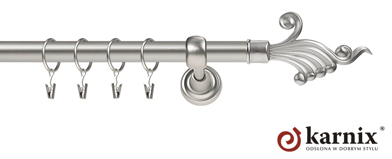 Karnisze Metalowe Rzymskie z kolekcji firmy KARNIX to  propozycja dla wielbicieli tradycyjnego wzornictwa. Wprowadzając do sprzedaży tę linię karniszy, postanowiliśmy połączyć przeszłość z przyszłością, aby wykreować ponadczasową kolekcję. Uniwersalność i pomysłowość  to słowa klucze, które w skrócie charakteryzują kolekcję karniszy metalowych rzymskich. Elementy karniszy w całości wykonane są z metalu pokrytego powłoką galwaniczną oraz warstwą lakieru, która zwiększa odporność na ścieranie. Uwaga. Inox oraz antracyt dostępne są przy średnicach 19 i 25mm.