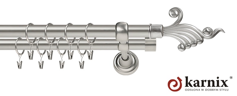 Karnisze Metalowe Rzymskie z kolekcji firmy KARNIX to  propozycja dla wielbicieli tradycyjnego wzornictwa. Wprowadzając do sprzedaży tę linię karniszy, postanowiliśmy połączyć przeszłość z przyszłością, aby wykreować ponadczasową kolekcję. Uniwersalność i pomysłowość  to słowa klucze, które w skrócie charakteryzują kolekcję karniszy metalowych rzymskich. Elementy karniszy w całości wykonane są z metalu pokrytego powłoką galwaniczną oraz warstwą lakieru, która zwiększa odporność na ścieranie. Uwaga. Inox oraz antracyt dostępne są przy średnicach 19 i 25mm.