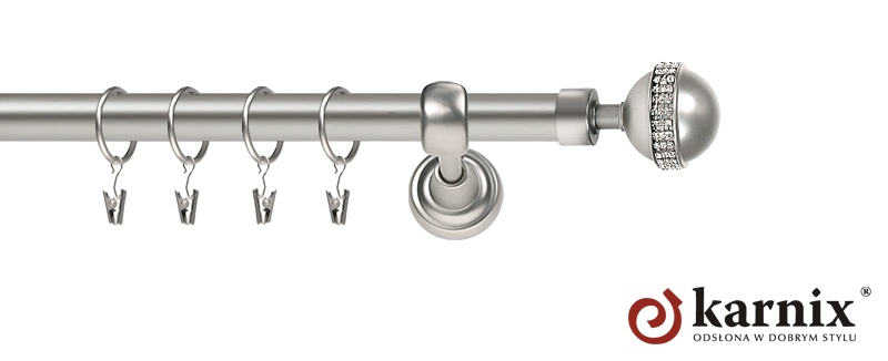 Karnisze Metalowe Rzymskie 25mm Globi Crystal chrom mat