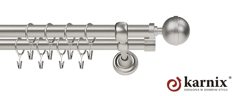Karnisze Metalowe Rzymskie z kolekcji firmy KARNIX to  propozycja dla wielbicieli tradycyjnego wzornictwa. Wprowadzając do sprzedaży tę linię karniszy, postanowiliśmy połączyć przeszłość z przyszłością, aby wykreować ponadczasową kolekcję. Uniwersalność i pomysłowość  to słowa klucze, które w skrócie charakteryzują kolekcję karniszy metalowych rzymskich. Elementy karniszy w całości wykonane są z metalu pokrytego powłoką galwaniczną oraz warstwą lakieru, która zwiększa odporność na ścieranie. Uwaga. Inox oraz antracyt dostępne są przy średnicach 19 i 25mm.