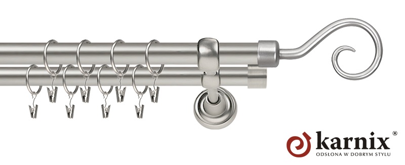 Karnisze Metalowe Rzymskie z kolekcji firmy KARNIX to  propozycja dla wielbicieli tradycyjnego wzornictwa. Wprowadzając do sprzedaży tę linię karniszy, postanowiliśmy połączyć przeszłość z przyszłością, aby wykreować ponadczasową kolekcję. Uniwersalność i pomysłowość  to słowa klucze, które w skrócie charakteryzują kolekcję karniszy metalowych rzymskich. Elementy karniszy w całości wykonane są z metalu pokrytego powłoką galwaniczną oraz warstwą lakieru, która zwiększa odporność na ścieranie. Uwaga. Inox oraz antracyt dostępne są przy średnicach 19 i 25mm.