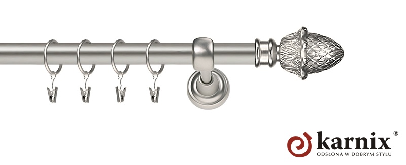 Karnisze Metalowe Rzymskie z kolekcji firmy KARNIX to  propozycja dla wielbicieli tradycyjnego wzornictwa. Wprowadzając do sprzedaży tę linię karniszy, postanowiliśmy połączyć przeszłość z przyszłością, aby wykreować ponadczasową kolekcję. Uniwersalność i pomysłowość  to słowa klucze, które w skrócie charakteryzują kolekcję karniszy metalowych rzymskich. Elementy karniszy w całości wykonane są z metalu pokrytego powłoką galwaniczną oraz warstwą lakieru, która zwiększa odporność na ścieranie. Uwaga. Inox oraz antracyt dostępne są przy średnicach 19 i 25mm.