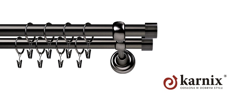 Karnisze Metalowe Rzymskie z kolekcji firmy KARNIX to propozycja dla wielbicieli tradycyjnego wzornictwa. Wprowadzając do sprzedaży tę linię karniszy, postanowiliśmy połączyć przeszłość z przyszłością, aby wykreować ponadczasową kolekcję. Uniwersalność i pomysłowość to słowa klucze, które w skrócie charakteryzują kolekcję karniszy metalowych rzymskich. Elementy karniszy w całości wykonane są z metalu pokrytego powłoką galwaniczną oraz warstwą lakieru, która zwiększa odporność na ścieranie. Uwaga. Inox oraz antracyt dostępne są przy średnicach 19 i 25mm.