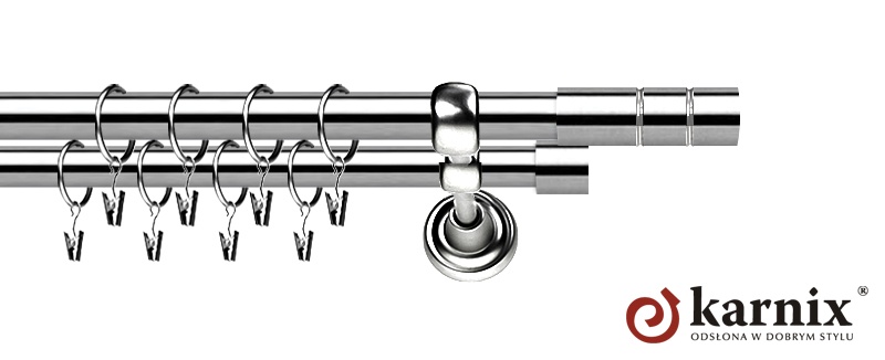 Karnisze Metalowe Rzymskie z kolekcji firmy KARNIX to  propozycja dla wielbicieli tradycyjnego wzornictwa. Wprowadzając do sprzedaży tę linię karniszy, postanowiliśmy połączyć przeszłość z przyszłością, aby wykreować ponadczasową kolekcję. Uniwersalność i pomysłowość  to słowa klucze, które w skrócie charakteryzują kolekcję karniszy metalowych rzymskich. Elementy karniszy w całości wykonane są z metalu pokrytego powłoką galwaniczną oraz warstwą lakieru, która zwiększa odporność na ścieranie. Uwaga. Inox oraz antracyt dostępne są przy średnicach 19 i 25mm.