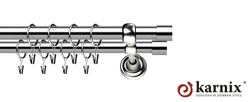 Karnisze Metalowe Rzymskie z kolekcji firmy KARNIX to  propozycja dla wielbicieli tradycyjnego wzornictwa. Wprowadzając do sprzedaży tę linię karniszy, postanowiliśmy połączyć przeszłość z przyszłością, aby wykreować ponadczasową kolekcję. Uniwersalność i pomysłowość  to słowa klucze, które w skrócie charakteryzują kolekcję karniszy metalowych rzymskich. Elementy karniszy w całości wykonane są z metalu pokrytego powłoką galwaniczną oraz warstwą lakieru, która zwiększa odporność na ścieranie. Uwaga. Inox oraz antracyt dostępne są przy średnicach 19 i 25mm.