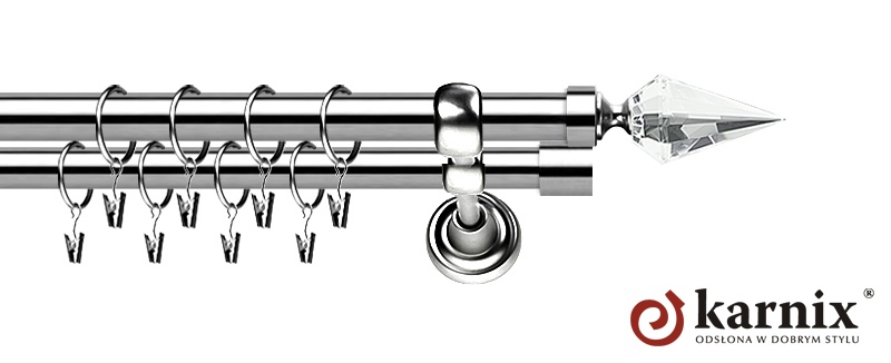 Karnisze Metalowe Rzymskie z kolekcji firmy KARNIX to  propozycja dla wielbicieli tradycyjnego wzornictwa. Wprowadzając do sprzedaży tę linię karniszy, postanowiliśmy połączyć przeszłość z przyszłością, aby wykreować ponadczasową kolekcję. Uniwersalność i pomysłowość  to słowa klucze, które w skrócie charakteryzują kolekcję karniszy metalowych rzymskich. Elementy karniszy w całości wykonane są z metalu pokrytego powłoką galwaniczną oraz warstwą lakieru, która zwiększa odporność na ścieranie. Uwaga. Inox oraz antracyt dostępne są przy średnicach 19 i 25mm.