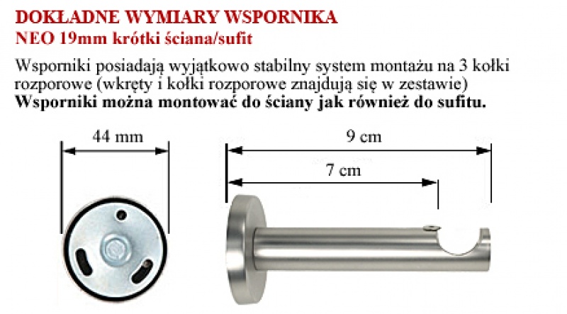 • 2 wsporniki (NEO 19mm krótki ściana/sufit)