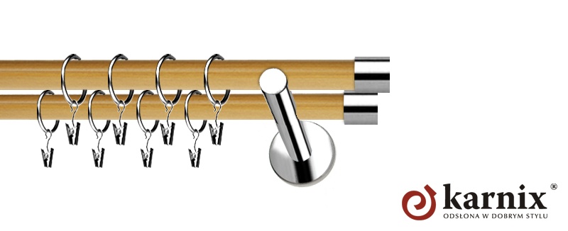 Karnisze Nowoczesne NEO Prestige z nowej kolekcji firmy KARNIX to  propozycja skierowana do wielbicieli nowoczesnego wzornictwa. Wprowadzając do sprzedaży tę nową, designerską linię karniszy, postanowiliśmy połączyć przeszłość z przyszłością, aby wykreować ponadczasową kolekcję. Jakość, pomysłowość i nowoczesność  to słowa klucze, które w skrócie charakteryzują kolekcję karniszy nowoczesnych NEO. Elementy karniszy w całości wykonane są z metalu pokrytego powłoką galwaniczną oraz warstwą lakieru, która zwiększa odporność na ścieranie.