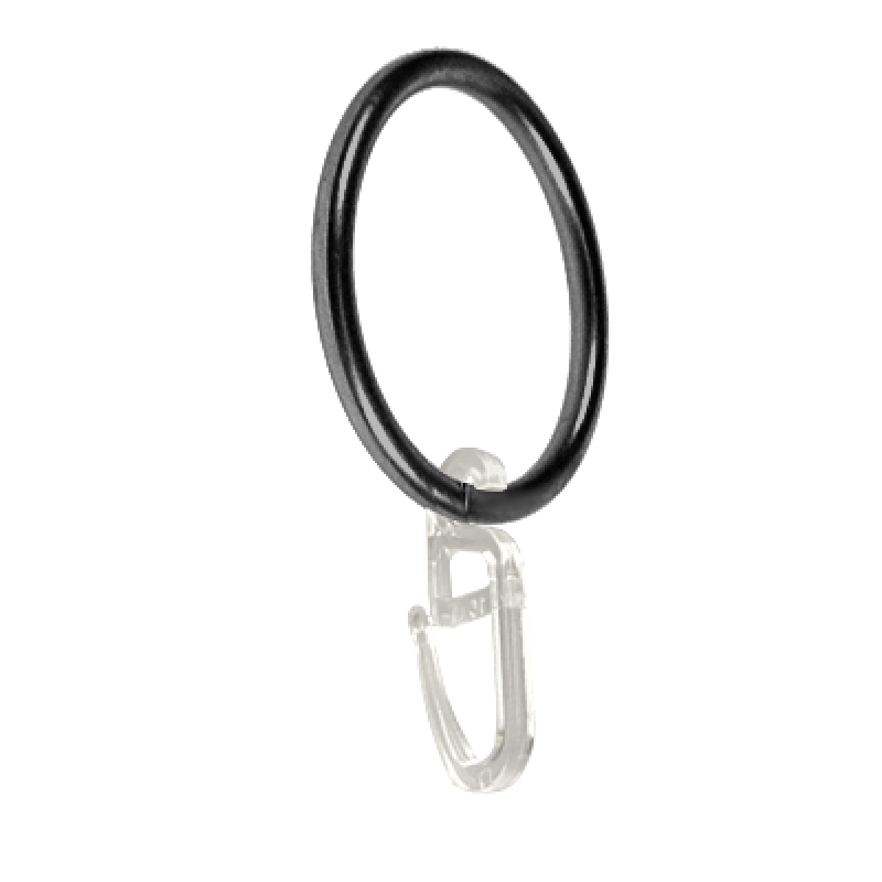 Kółka z agrafkami w kolorze antracyt (czarny nikiel) do karniszy o średnicy rur 25mm wykonane z metalu pokrytego powłoką galwaniczną oraz warstwą lakieru, która zwiększa odporność na ścieranie.