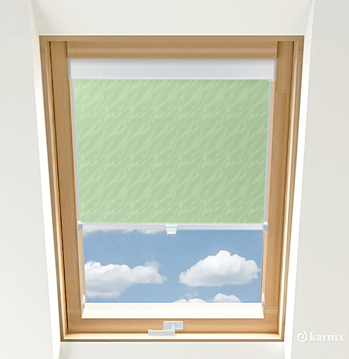Rolety Dachowe Karnix są tak zaprojektowane aby można je było szybko i łatwo zainstalować na oknie.  Samoczynnie zwijający sprężynowy mechanizm utrzymuje materiał w stałej pozycji naciągając tkaninę, co zapobiega jej fałdowaniu.