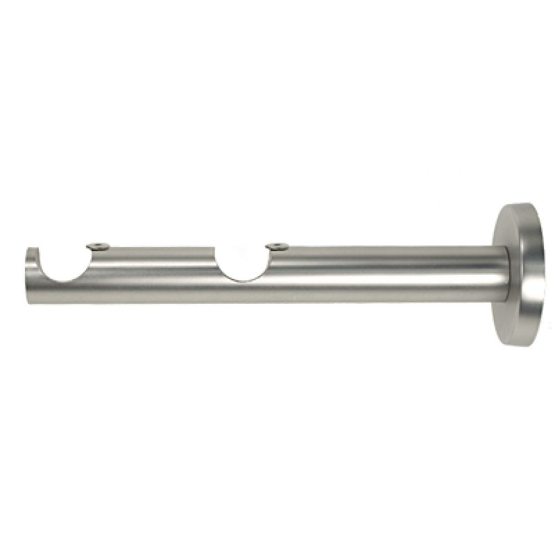 Wsporniki NEO podwójne ścienne w kolorze chrom mat (satyna nikiel) do karniszy o średnicy rur 19mm wykonane z metalu pokrytego powłoką galwaniczną oraz warstwą lakieru, która zwiększa odporność na ścieranie. Wsporniki posiadają unikalny, wyjątkowo stabilny system montażu na 3 kołki rozporowe (wkręty oraz kołki montażowe dołączone są do produktu). Całkowita długość wspornika wynosi 16 cm. Po zamontowaniu wspornika odległość pierwszej rury od ściany wynosi 7 cm.