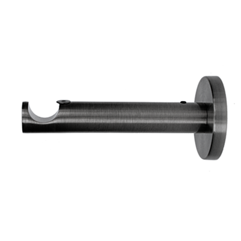 Wsporniki NEO krótkie pojedyncze ściana/sufit w kolorze antracyt (czarny nikiel) do karniszy o średnicy rur 19mm wykonane z metalu pokrytego powłoką galwaniczną oraz warstwą lakieru, która zwiększa odporność na ścieranie. Wsporniki posiadają unikalny, wyjątkowo stabilny system montażu na 3 kołki rozporowe (wkręty oraz kołki montażowe dołączone są do produktu). Uniwersalny system pozwala na montaż zarówno do ściany jak i do sufitu. Całkowita długość wspornika wynosi 9 cm. Po zamontowaniu wspornika odległość rury od ściany/sufitu wynosi 7 cm.