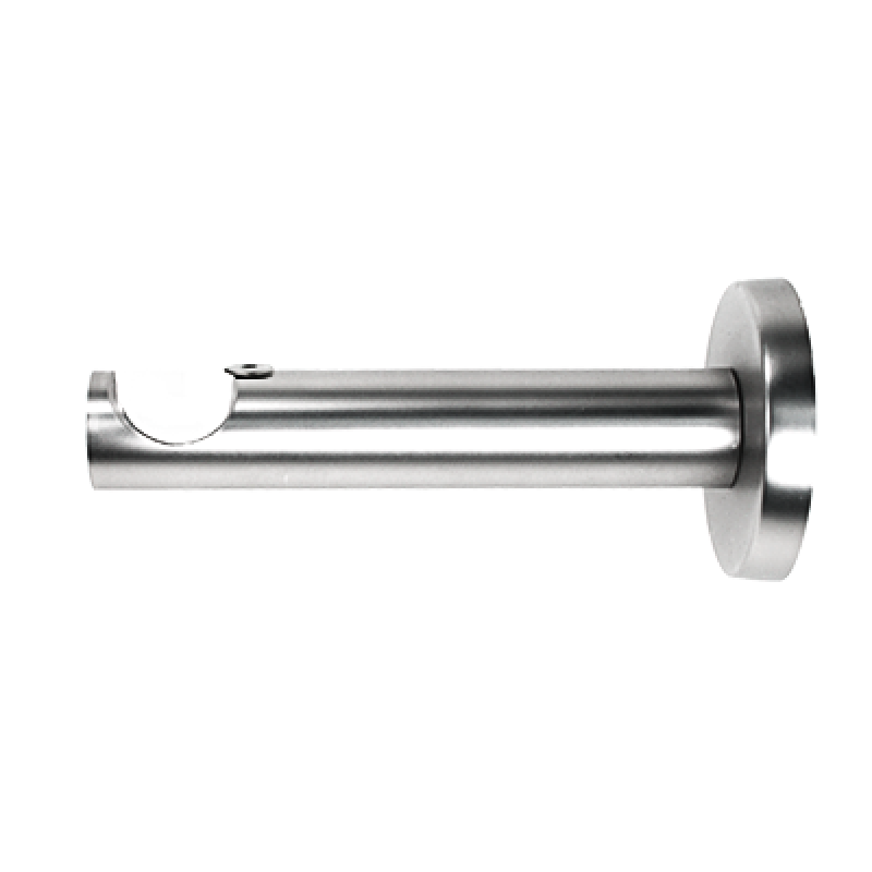 Wsporniki NEO krótkie pojedyncze ściana/sufit w kolorze inox (efekt stali nierdzewnej) do karniszy o średnicy rur 19mm wykonane z metalu pokrytego powłoką galwaniczną oraz warstwą lakieru, która zwiększa odporność na ścieranie. Wsporniki posiadają unikalny, wyjątkowo stabilny system montażu na 3 kołki rozporowe (wkręty oraz kołki montażowe dołączone są do produktu). Uniwersalny system pozwala na montaż zarówno do ściany jak i do sufitu. Całkowita długość wspornika wynosi 9 cm. Po zamontowaniu wspornika odległość rury od ściany/sufitu wynosi 7 cm.