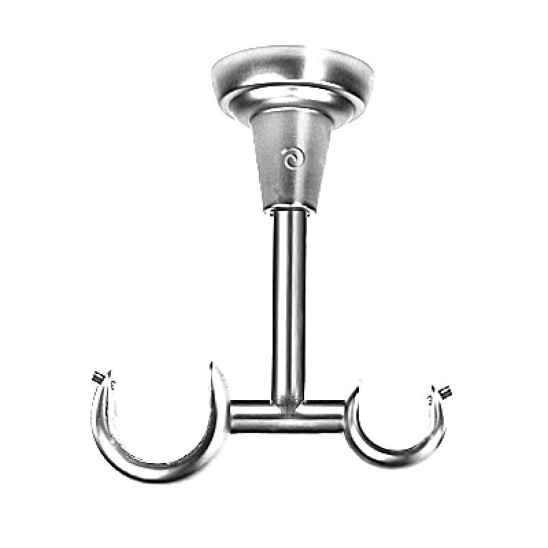 Wsporniki Rzymskie podwójne sufitowe w kolorze inox (efekt stali nierdzewnej) do karniszy o średnicy rur 25/19mm wykonane z metalu pokrytego powłoką galwaniczną oraz warstwą lakieru, która zwiększa odporność na ścieranie. Wsporniki posiadają unikalny, wyjątkowo stabilny system montażu na 3 kołki rozporowe (wkręty oraz kołki montażowe dołączone są do produktu). Całkowita wysokość wspornika wynosi 14 cm. Po zamontowaniu wspornika odległość rur od sufitu wynosi 11,5 cm.