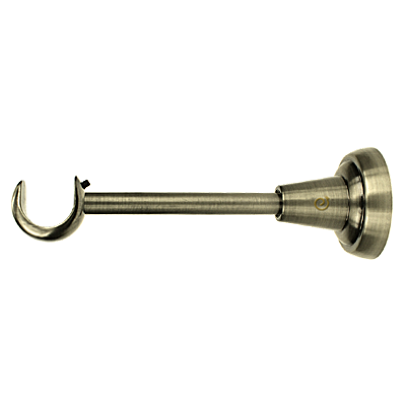 Wsporniki Rzymskie/Aspen pojedyncze ściana/sufit* w kolorze antyk mosiądz (stare złoto) do karniszy o średnicy rur/szyn 19mm wykonane z metalu pokrytego powłoką galwaniczną oraz warstwą lakieru, która zwiększa odporność na ścieranie. Wsporniki posiadają unikalny, wyjątkowo stabilny system montażu na 3 kołki rozporowe (wkręty oraz kołki montażowe dołączone są do produktu). Uniwersalny system pozwala na montaż zarówno do ściany jak i do sufitu*. Całkowita długość wspornika wynosi 16 cm. Po zamontowaniu wspornika odległość rury od ściany/sufitu wynosi 13,5 cm. * W przypadku wykorzystania wspornika do karniszy szynowych ASPEN montaż jest możliwy tylko i wyłącznie do ściany.