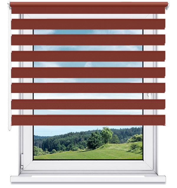 Zasada działania rolet Dzień-Noc. Roletę można także całkowicie zwinąć wpuszczając światło do pomieszczenia.