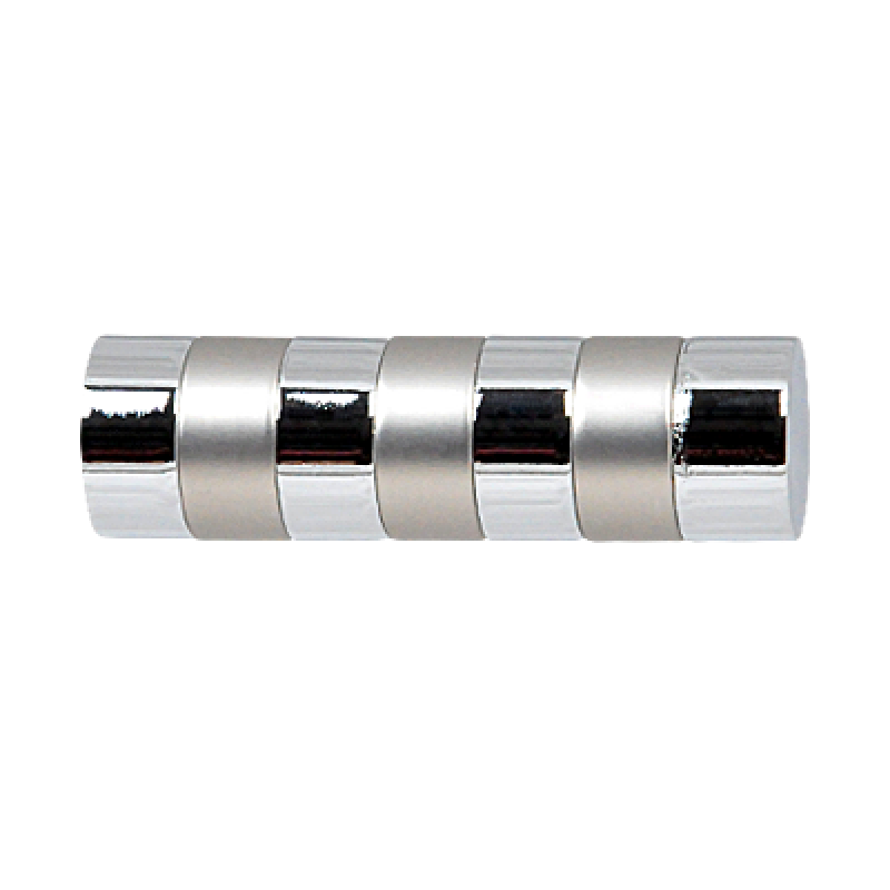 Zakończenia ETIUDA w kolorze chrom mat/inox (satyna nikiel/efekt stali nierdzewnej) do karniszy o średnicy rur 19mm wykonane z metalu pokrytego powłoką galwaniczną oraz warstwą lakieru, która zwiększa odporność na ścieranie. Komplet zakończeń Etiuda przedłuża karnisz łącznie o 14 cm.