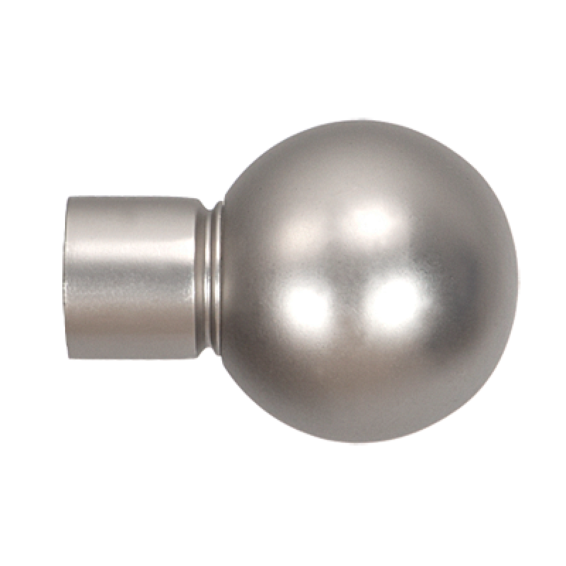 Zakończenia KULA w kolorze chrom mat (satyna nikiel) do karniszy o średnicy rur 25mm wykonane z metalu pokrytego powłoką galwaniczną oraz warstwą lakieru, która zwiększa odporność na ścieranie. Komplet zakończeń Kula przedłuża karnisz łącznie o 14 cm.